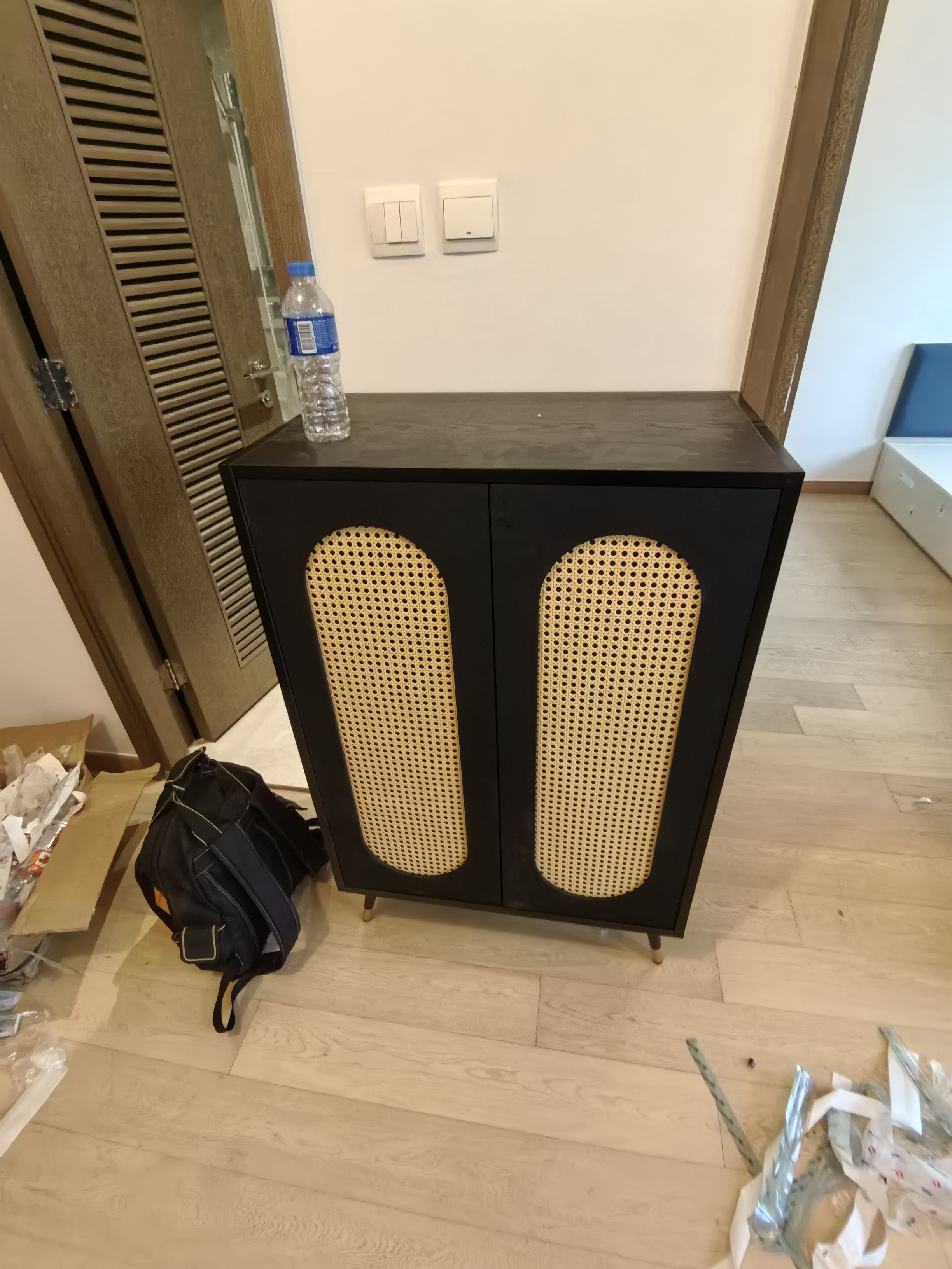 ✦ 編織紋獨立鞋櫃:藤編門设计,防塵防潮,搬家直接推走